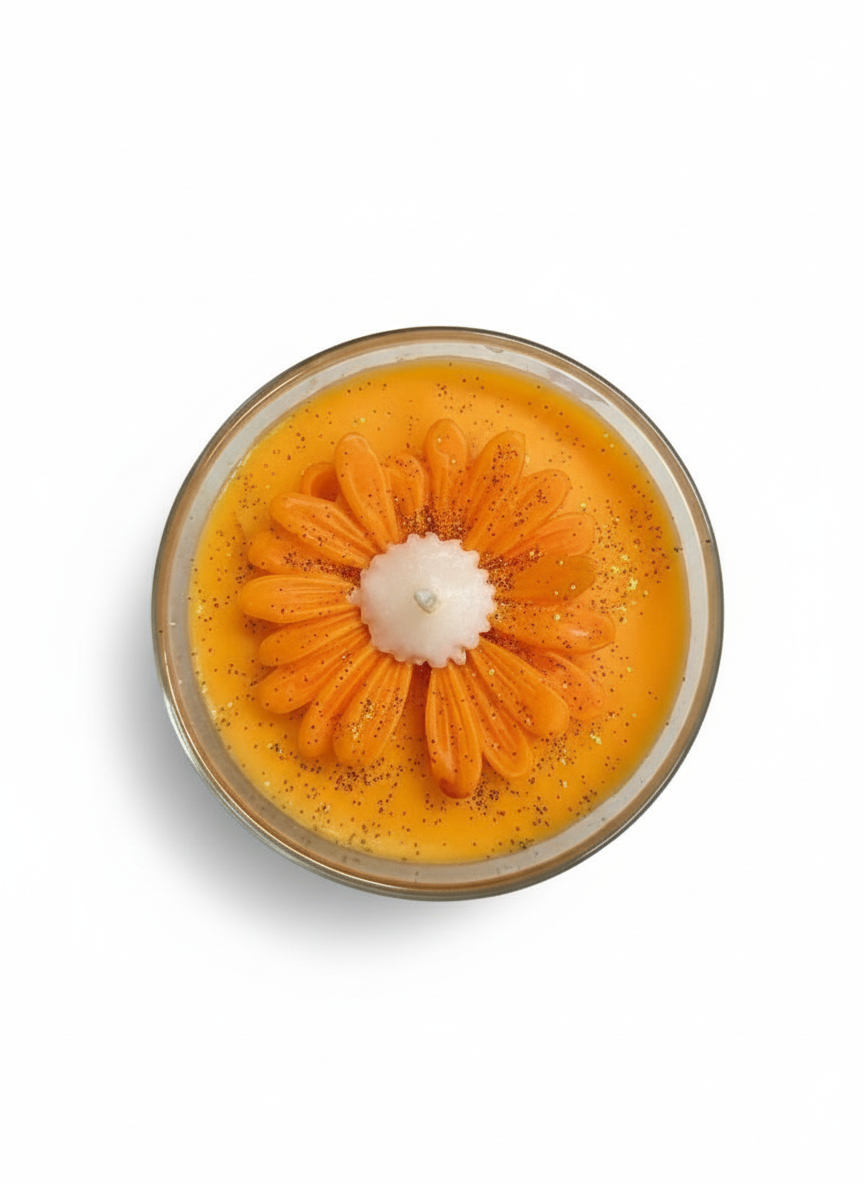 Χειροποίητο αρωματικό κερί μαργαρίτα, φτιαγμένο αποκλειστικά από φυσικό κερί σόγιας, φυτικής προέλευσης και απολύτως φιλικό προς το περιβάλλον.